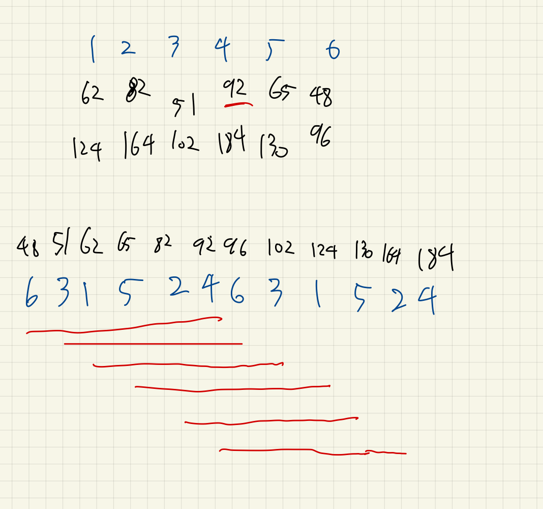 그 후보군 배열을 정렬하면, 위의 그림처럼 구성되는데, n길이의 슬라이딩 윈도우가 모든 요소를 하나씩 포함한다는 것을 알 수 있다.