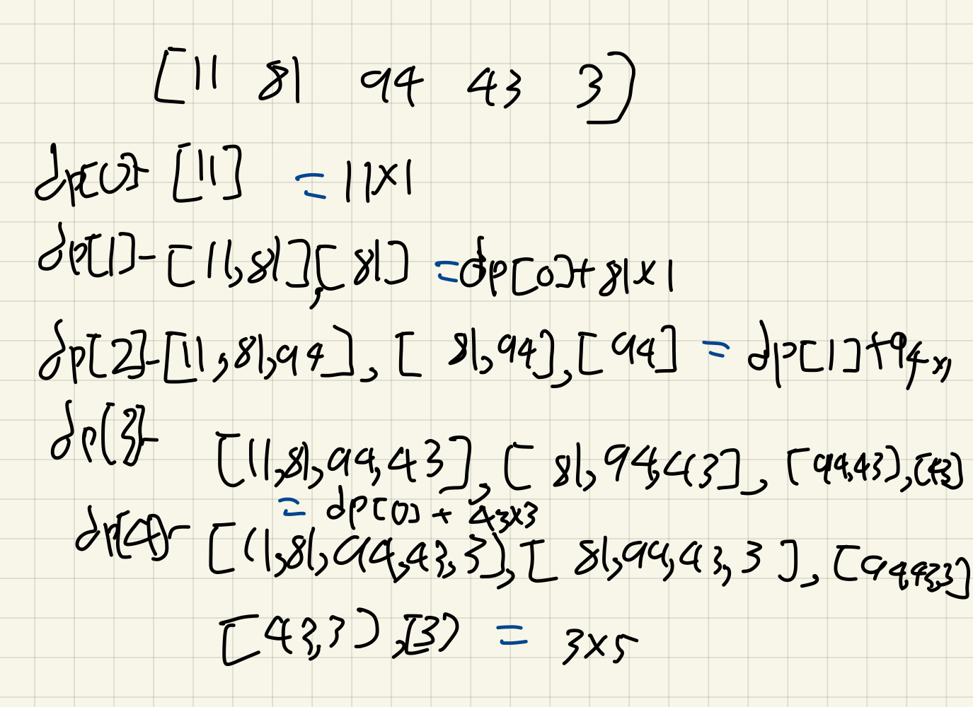 dp[i] = dp[j] + arr[i] * (i-j)이다.